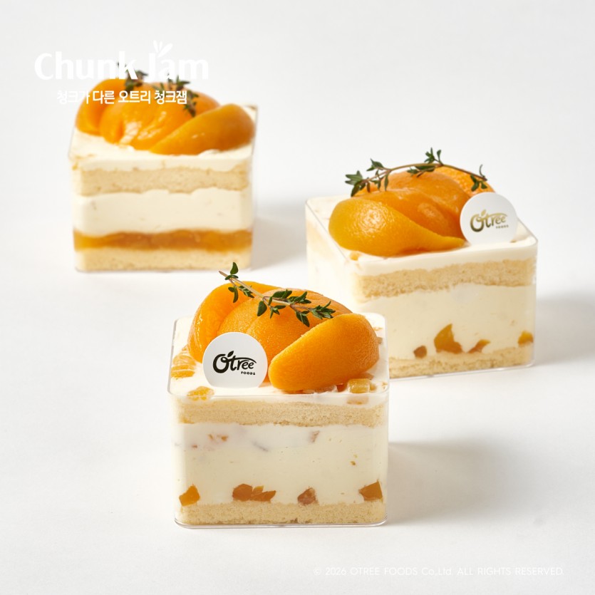 Cake Spoonable PEACH Cake 본문 재료 * 제누와즈 (사각 1호 틀) 전란 155g 설탕 110g 박력분 95g 베이킹파우더 1g 무염버터 30g 우유 30g * 복숭아 크림 복숭아 청크잼 75g 생크림 75g * 마스카포네 크림 마스카포네 치즈 10g 생크림 90g 설탕 10g * 완성하기 (1개 당) 제누와즈 2장 설탕 시럽 (분량 외) 적당량 복숭아 크림 120g 마스카포네 크림 20g 데코스노우 적당량 황도 복숭아 2pcs 조리과정 Spoonable PEACH Cake * 제누와즈 (1호)1. 전란과 설탕을 섞어 중탕 후 뽀얗고 가볍게 휘핑한다.2. 체 친 가루를 넣고 주걱으로 섞는다.3. 50℃로 녹인 버터와 우유를 넣고 주걱으로 20번 이상 섞는다.4. 준비된 틀에 80%를 채워 170/170℃ 30-40분 굽는다.5. 틀에서 바로 꺼내어 한 김 식힌다.6. 1.5cm 높이로 재단한 후 용기 사이즈에 맞게 2장 재단하여 준비한다.* 복숭아 크림1. 복숭아 청크잼, 생크림을 넣고 섞는다.* 마스카포네 크림1. 마스카포네 크림을 부드럽게 푼 뒤, 70-80%로 부드럽게 휘핑한 생크림을 넣고 섞는다.* 완성하기1. 용기에 사이즈에 맞게 재단한 제누와즈를 넣고 설탕 시럽을 적당량 바른다.2. 복숭아 크림 120g 평평하게 담는다.3. 나머지 제누와즈를 넣고 설탕 시럽을 적당량 바른다.4. 마스카포네 크림을 용기 윗면까지 올라올 수 있도록 파이핑한다.5. 데코스노우와 황도 복숭아, 허브로 마무리 장식한다. 관련제품 1 Chunk Jam 복숭아 청크잼 목록 이전 레시피Earl Grey Peach Cake 다음 레시피Double Sweet Potato Cake