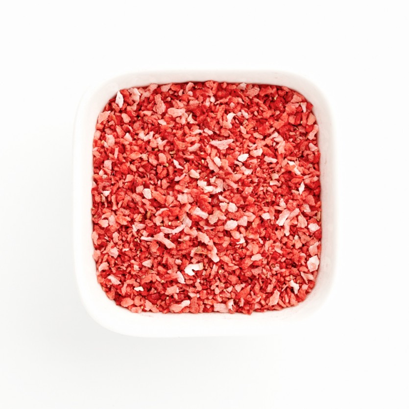 FD 딸기 가당 그래뉼 FD Processed Strawberry Granule 브랜드명/제조사명 원산지 China 포장단위 10KG 주요성분 딸기 80% 소비기한 제조일로부터 18개월까지 보관방법 실온보관 원료정보 가당 처리한 딸기를 동결건조(Freeze Dried)하여 활용하기 좋게 만든 과일 원료Application : 케이크 및 구움과자 장식용, 코팅 초콜릿 원료
