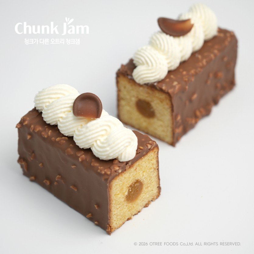 구움과자 파인 코코 파운드 본문 재료 * 분량: 2개 분량 <코코넛 파운드> 버터 75g 설탕 62g 전화당 15g 전란 57g 박력분 75g 코코넛 가루 15g 베이킹 파우더 1g 코코넛 밀크 10g <시럽> 물 15g 설탕 7g 말리부 리큐르 3g <파인애플 콩피> 파인애플 퓨레 65g 파인애플 청크잼 26g 설탕 23g 펙틴 NH 1.4g 레몬즙 4g <코코넛 가나슈 몽떼> 코코넛 밀크 20g 생크림 90g 전화당 4g 젤라틴 매스 4.5g 화이트 커버춰 40g <밀크 엘로바주> 밀크 커버춰 200g 코코아버터 16g 포도씨유 6g 아몬드 분태 40g 조리과정 파인 코코 파운드 고소한 코코넛 파운드에 파인애플 잼을 넣어 촉촉함과 상큼함을 더한 제품<코코넛 파운드 공정>1.모든 재료는 실온(20~22℃)으로 준비2.실온 버터를 부드럽게 풀어준다.3.설탕과 전화당을 넣고 크림화한다.4.실온 전란을 3~4회에 나누어 넣으며 섞는다.5.체친 가루류를 넣고 섞는다.6.코코넛 밀크를 넣어 마무리한다.7.145g 팬닝 후 뚜껑을 덮고 160℃에서 18분 굽는다.8.파운드가 다 구워지면 따뜻할때 시럽을 바른다.<시럽 공정>1.물을 데운 후 설탕을 넣어 녹이고 말리부 리큐르를 넣어 섞는다.<파인애플 콩피 공정>1.파인애플 퓨레와 파인애플 청크잼을 40℃로 데운 후 설탕과 펙틴 NH를 넣고 끓인다.2.30초 정도 끓인 후 불에서 내려 레몬즙을 넣고 마무리한다.3.콩피가 뜨거울 때 파운드의 중앙에 붓는다.<코코넛 가나슈 몽떼 공정>1.코코넛 밀크, 생크림, 전화당을 데운 후 젤라틴 매스와 화이트 커버춰 초콜릿에 넣어 유화시킨다.2.냉장실에서 8시간 보관 후 휘핑하여 사용한다.<밀크 엔로바쥬 공정>1.밀크 커버춰 초콜릿, 코코아 버터, 포도씨유를 녹인 후 아몬드 분태를 섞는다.<마무리>1.냉장 상태의 파운드에 밀크 엔로바쥬를 부은 후 냉장실에 10분 넣어 굳힌다.2.864깍지로 코코넛 가나슈 몽떼를 파이핑한다. 관련제품 1 청크잼 파인애플 청크잼 목록 다음 레시피초코 한라봉 타르트